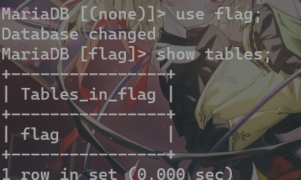 use flag;进入该数据库,show tables;查看数据库内所有表