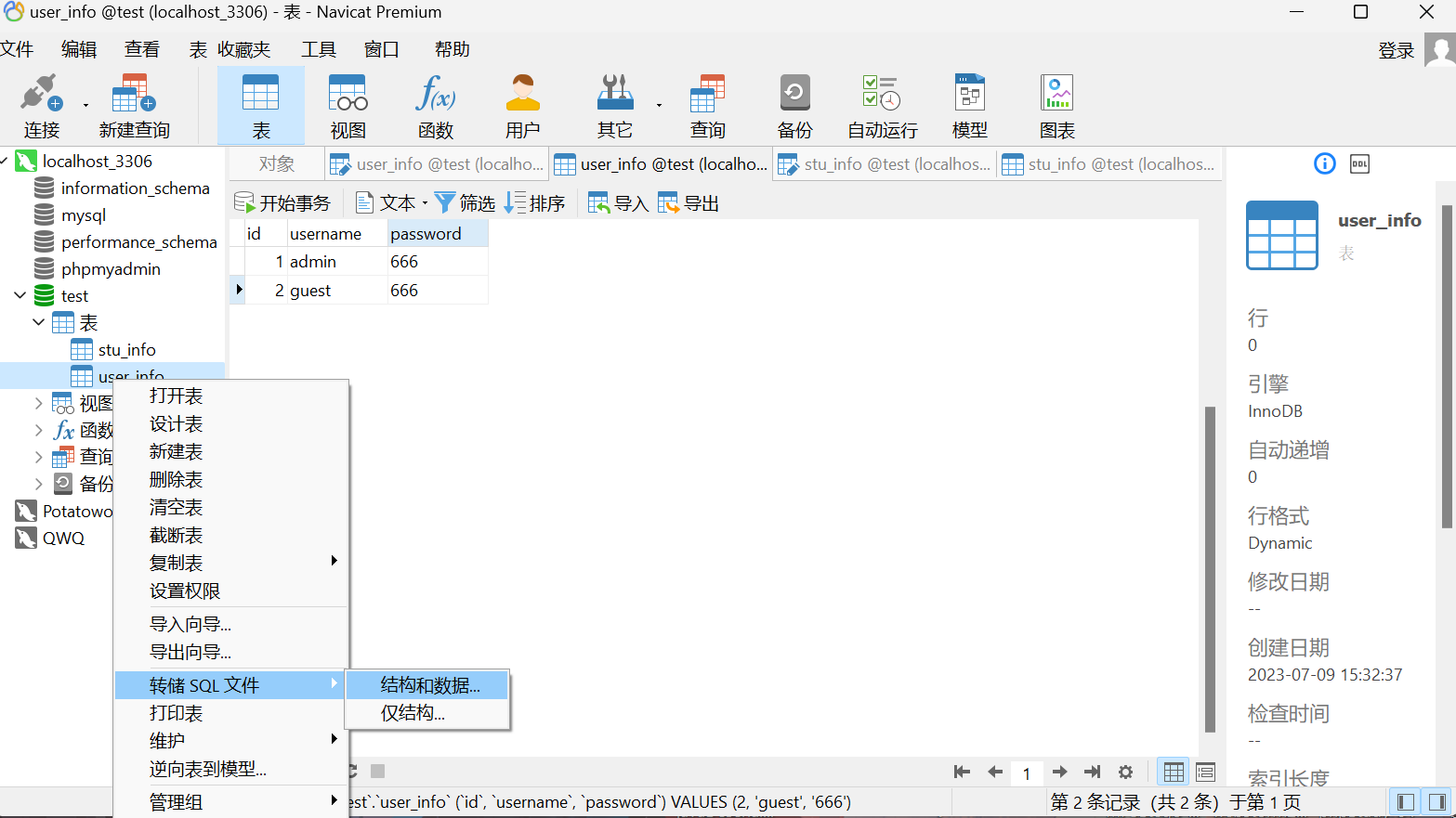 这里先开navicat可视化快速创个数据库然后导出,一会尝试从文件导入