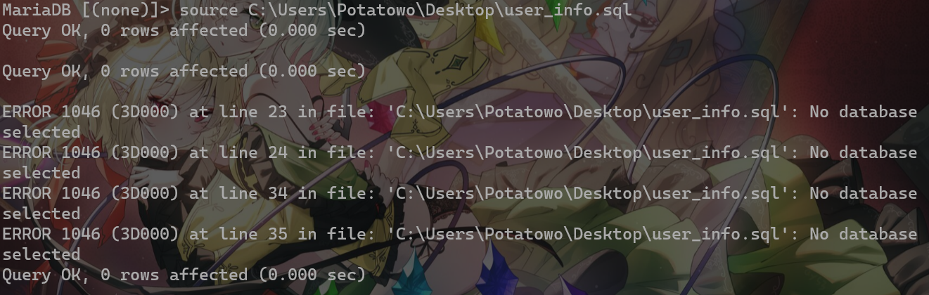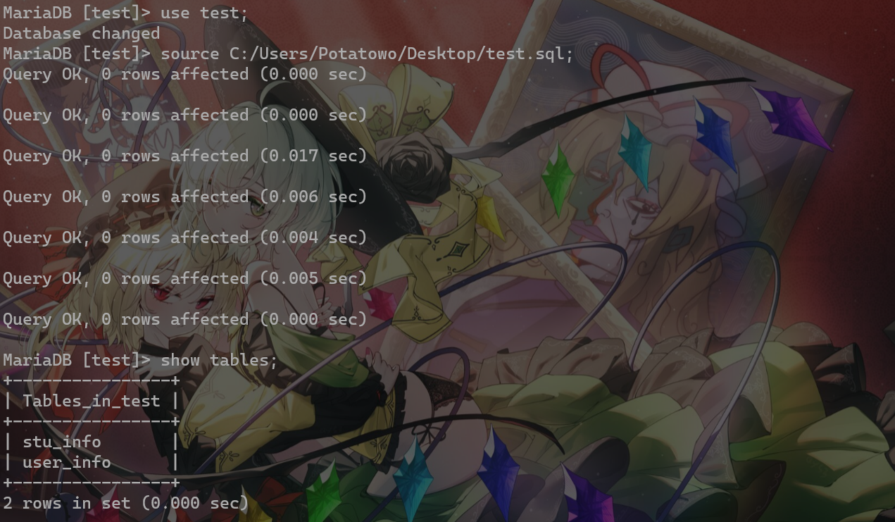 使用命令source <file_url>;导入sql文件(意外发现其实source命令也可以不需要分号,但是养成好习惯,都加)