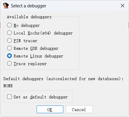 我们是对Linux64位程序进行debug,所以这里选Remote Linux debugger