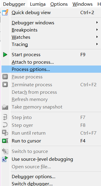 再点击一次菜单debugger就会发现变化了,点击这里的Process options