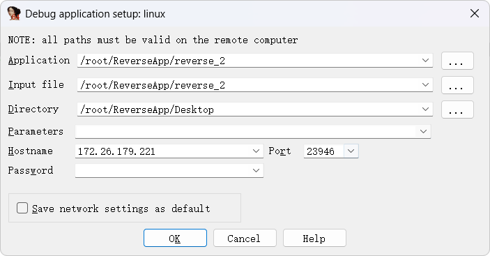 填入待调试文件在linux中的位置以及目录、以及远程主机的ip和debug端口