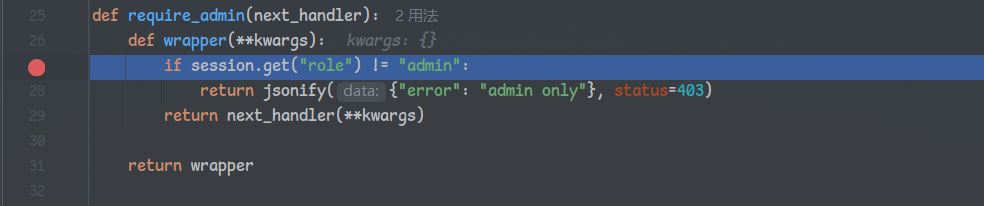 但是显而易见的,这个接口上存在一个flask的修饰器去进行一个鉴权。