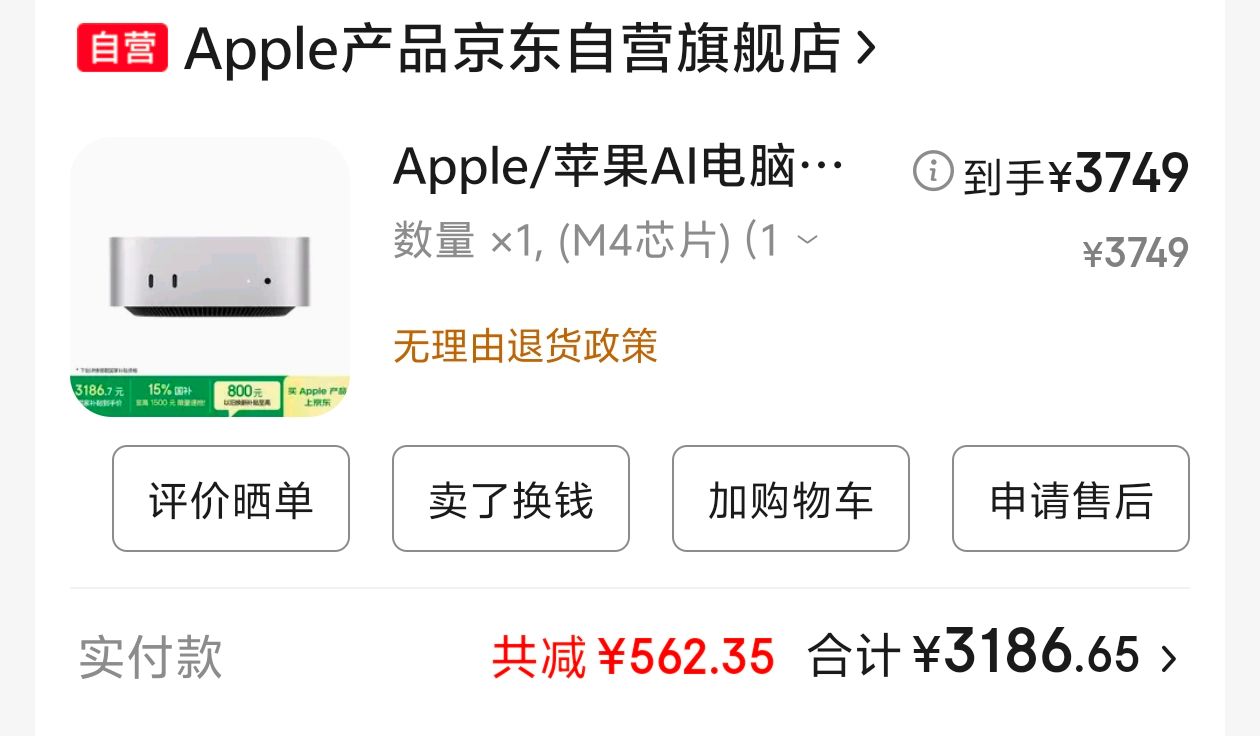 是的!我下单了一台丐版的mac mini,这台mac mini的来历说来充满了戏剧性。