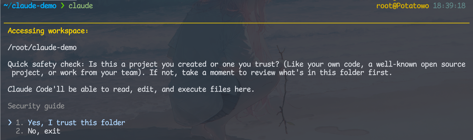 会让你信任你当前的目录,和vscode类似的,选yes就行