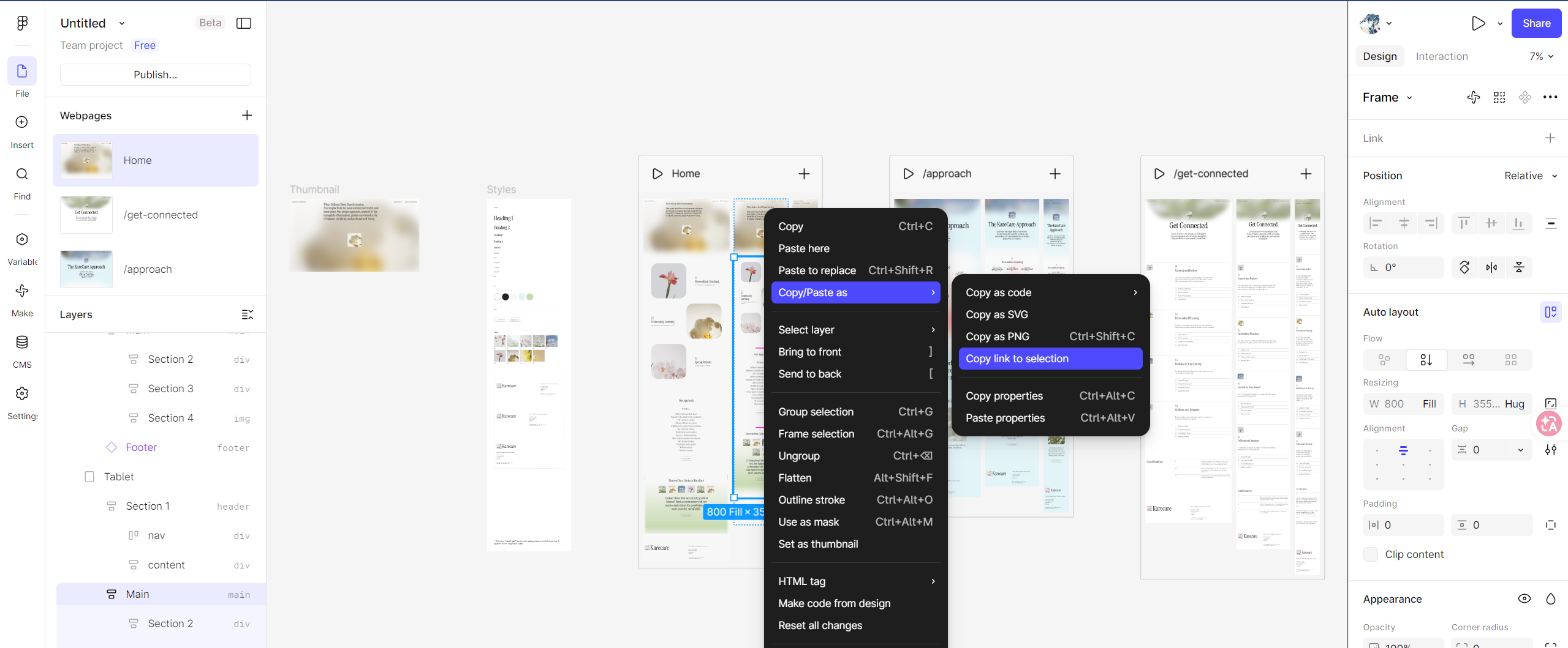 去figma创作一个设计图(这里直接用模板了),然后复制link