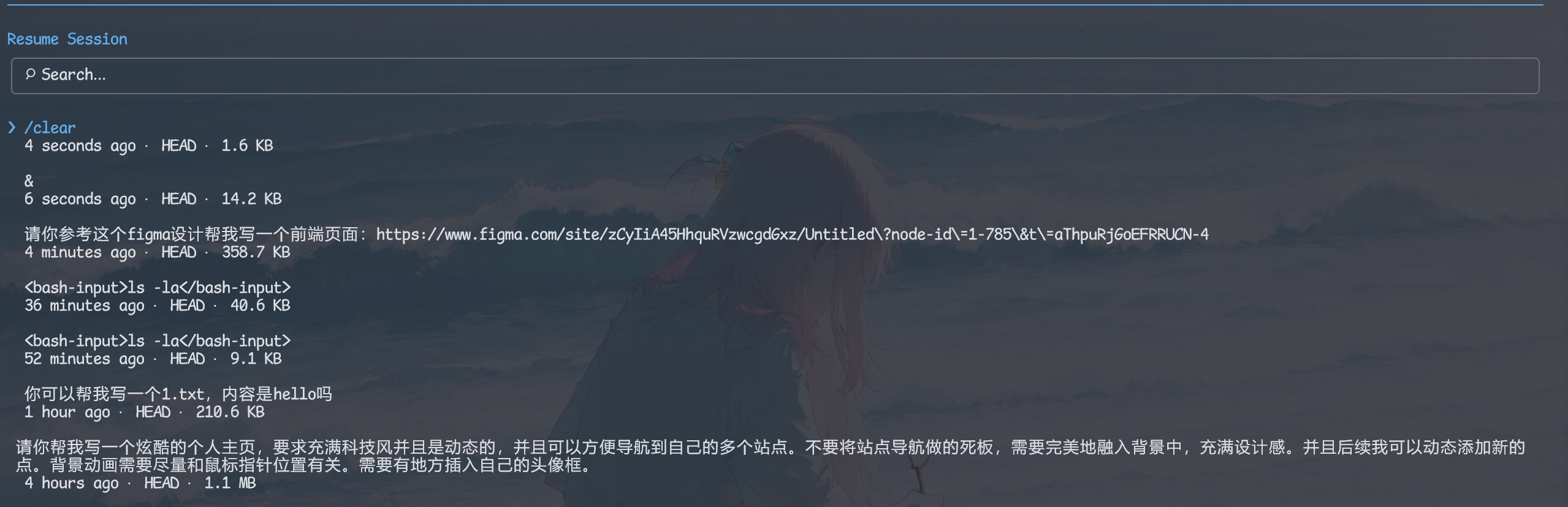双击Ctrl+c退出会话,claude --resume进入tui界面的历史会话