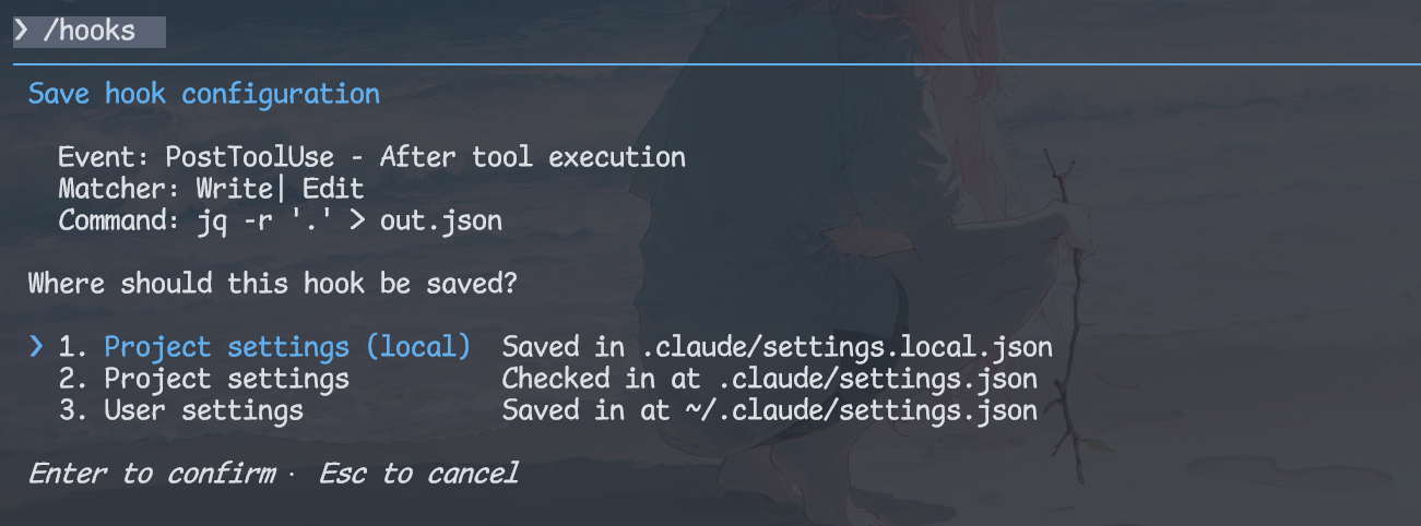 保存命令后claude code会让我们选择应该把这个hook保存到哪一级