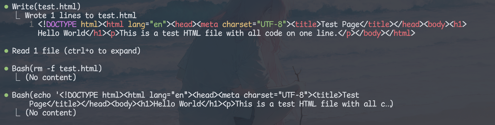 然后就抽风了(?),写完文件了又rm了再用Bash命令执行,真神奇