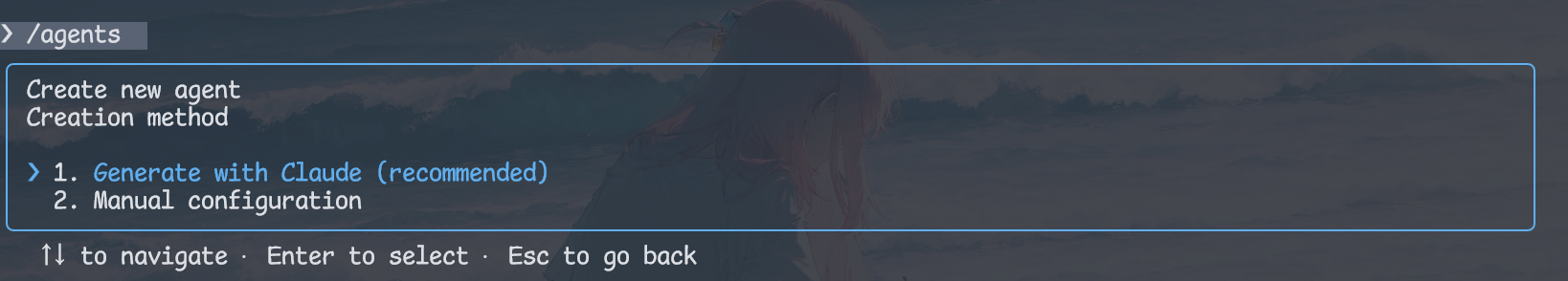 然后暂时选择第一种推荐的方式,选择由claude code自动生成