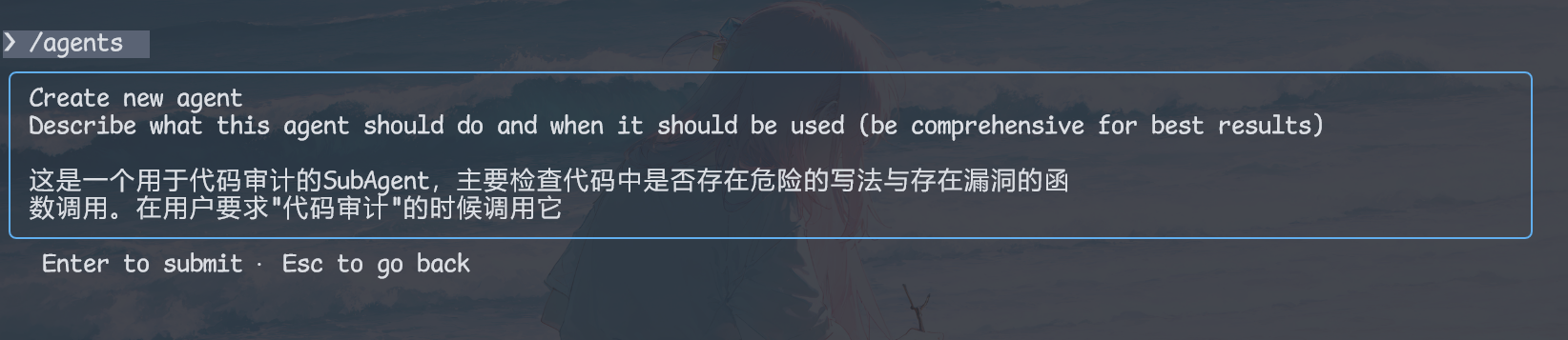 与之前一样的分层次创建子agent,我们希望多项目复用的话就写在home下吧,不过这里只是做测试学习,就选择当前项目里