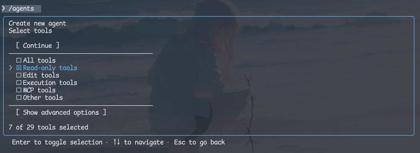 随后选择SubAgent可用的工具,我们这里选择Read-Only即可,代码审计仅需读取文件即可